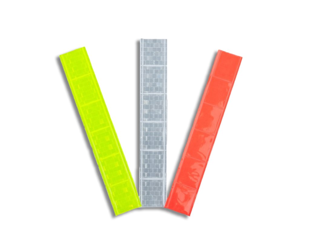 Reflexní samolepící pásky. Jsou ideální pro použití na kolech, helmách, kočárcích, invalidních vozících či třeba na školní tašce. Výrazně zlepšují viditelnost na ulici nebo silnici při snížené viditelnosti.