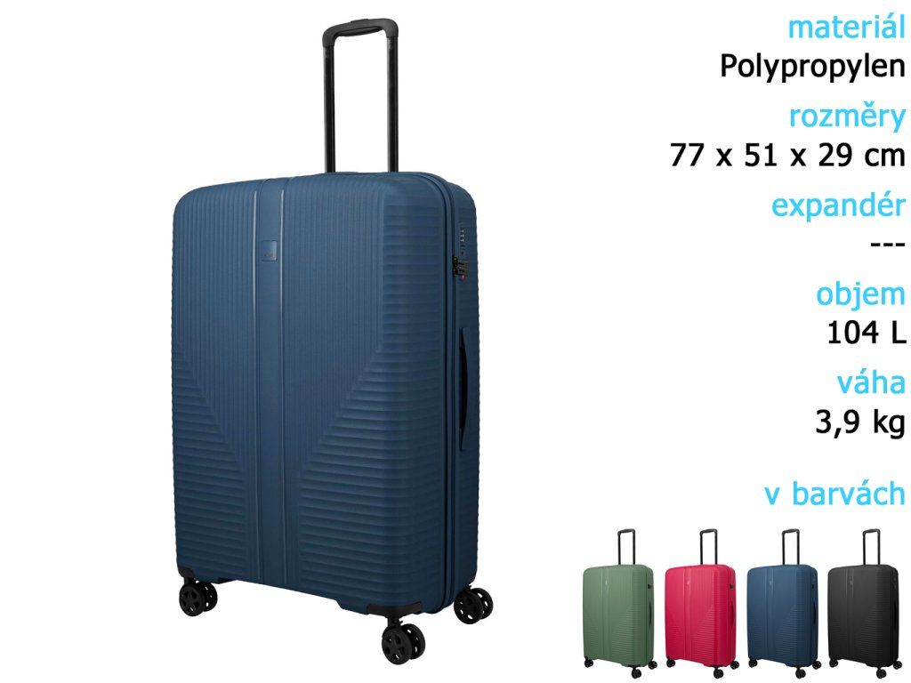 Elegantní a prostorný skořepinový kufr z odolného polypropylenu, vybavený čtyřmi kolečky a TSA zámkem.