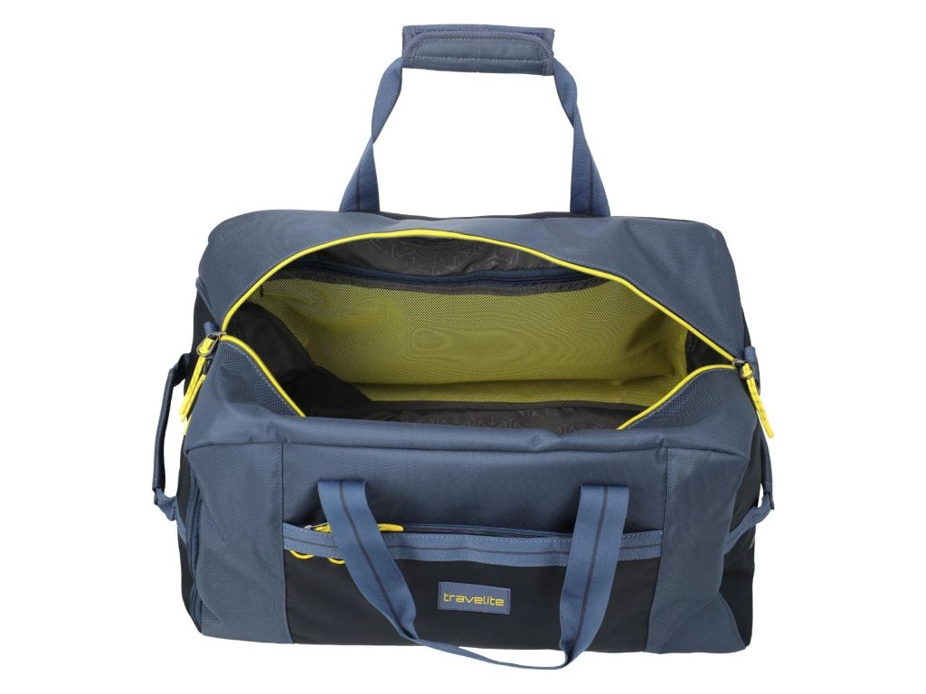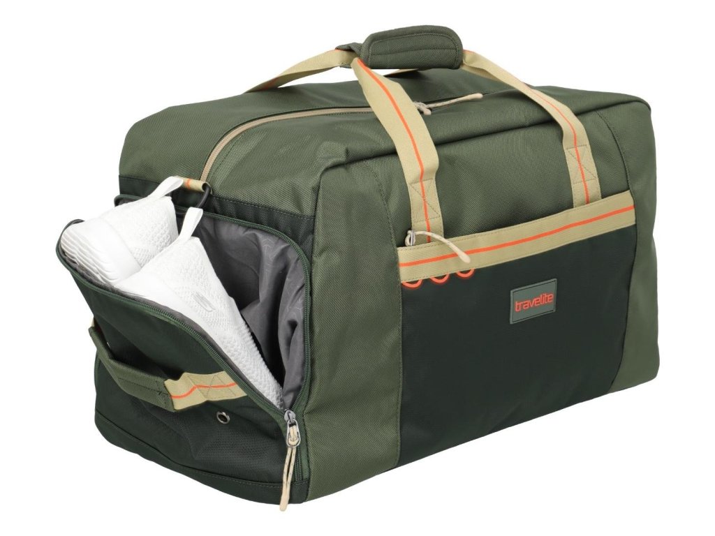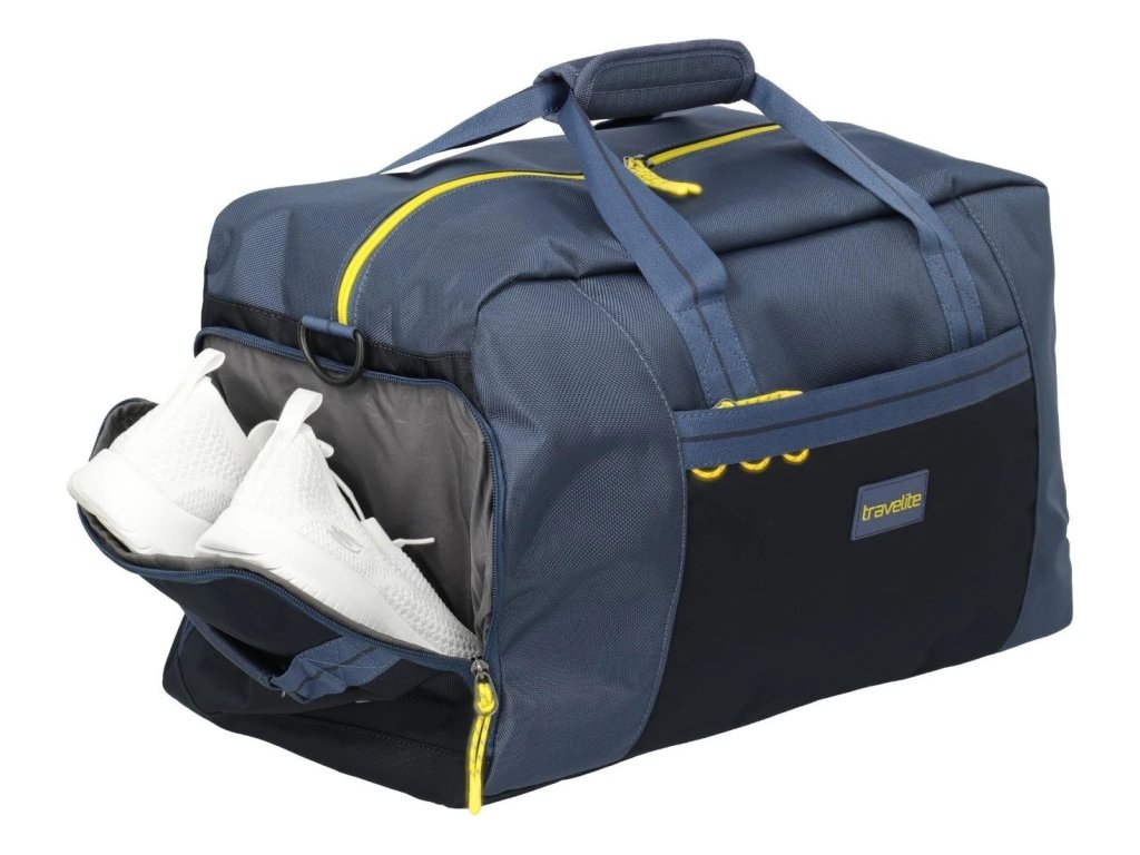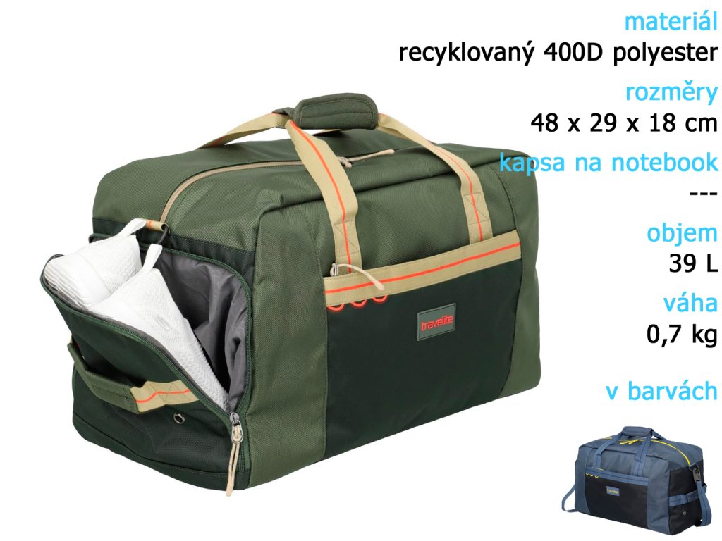 Originální cestovní/sportovní taška z kolekce Travelite Color Craze s odnímatelným popruhem přes rameno, ventilovanou kapsou na boty a odolným recyklovaným materiálem.
