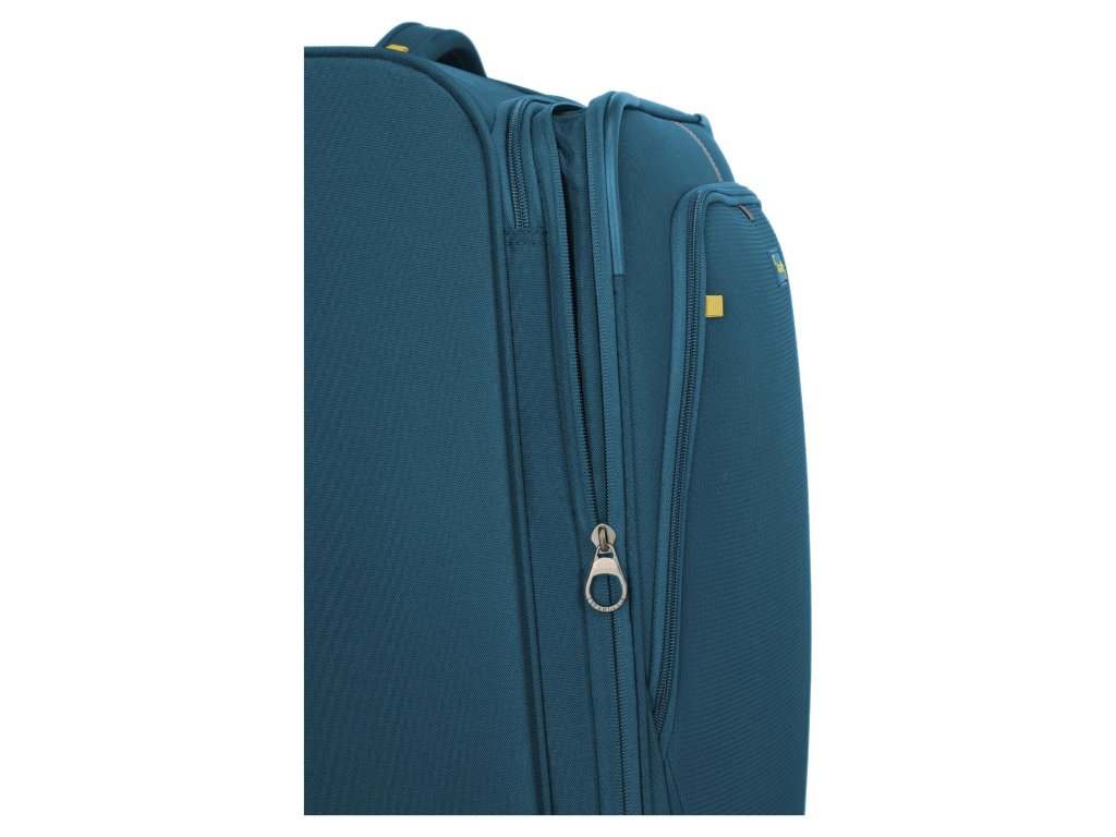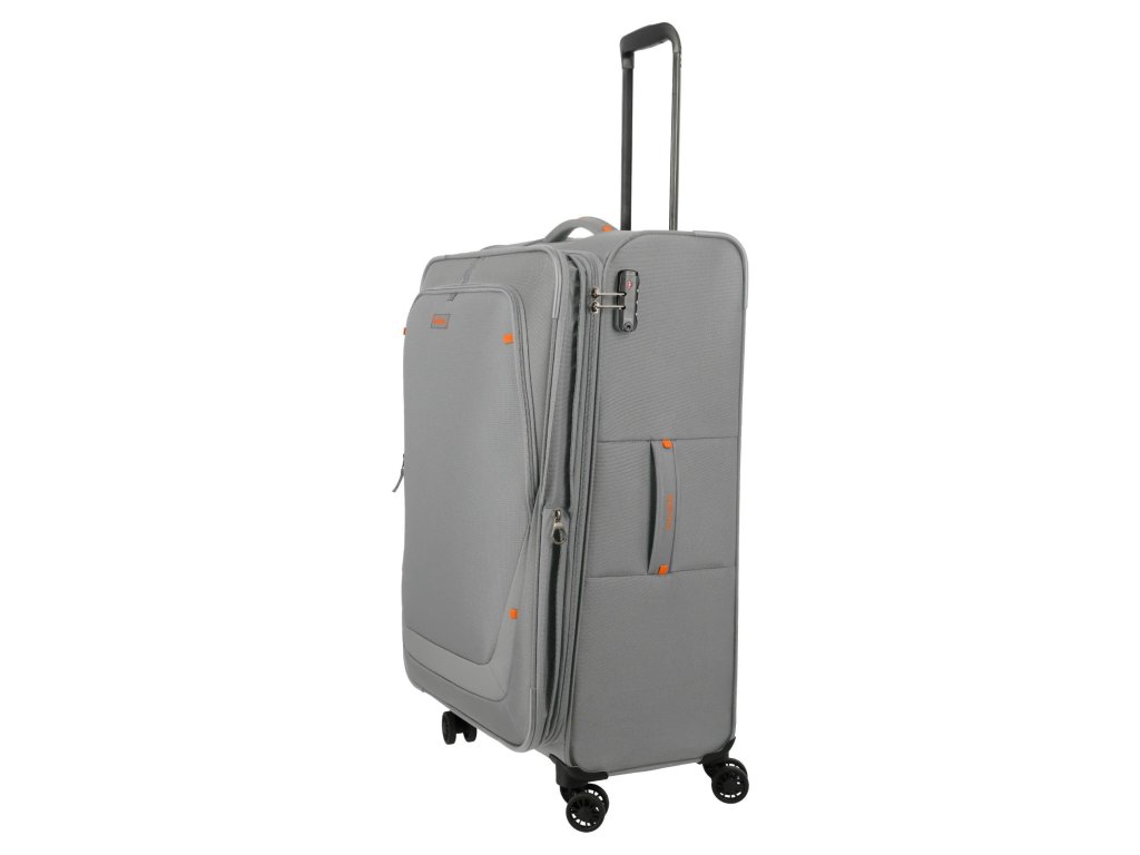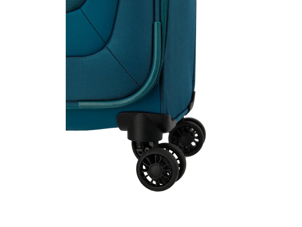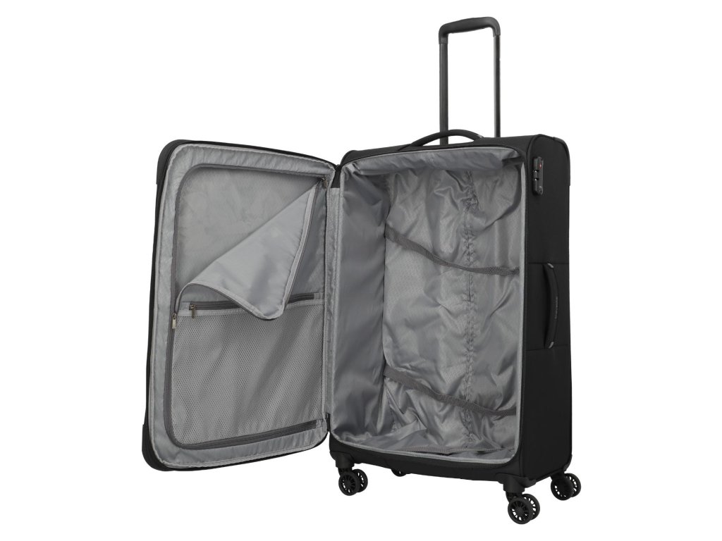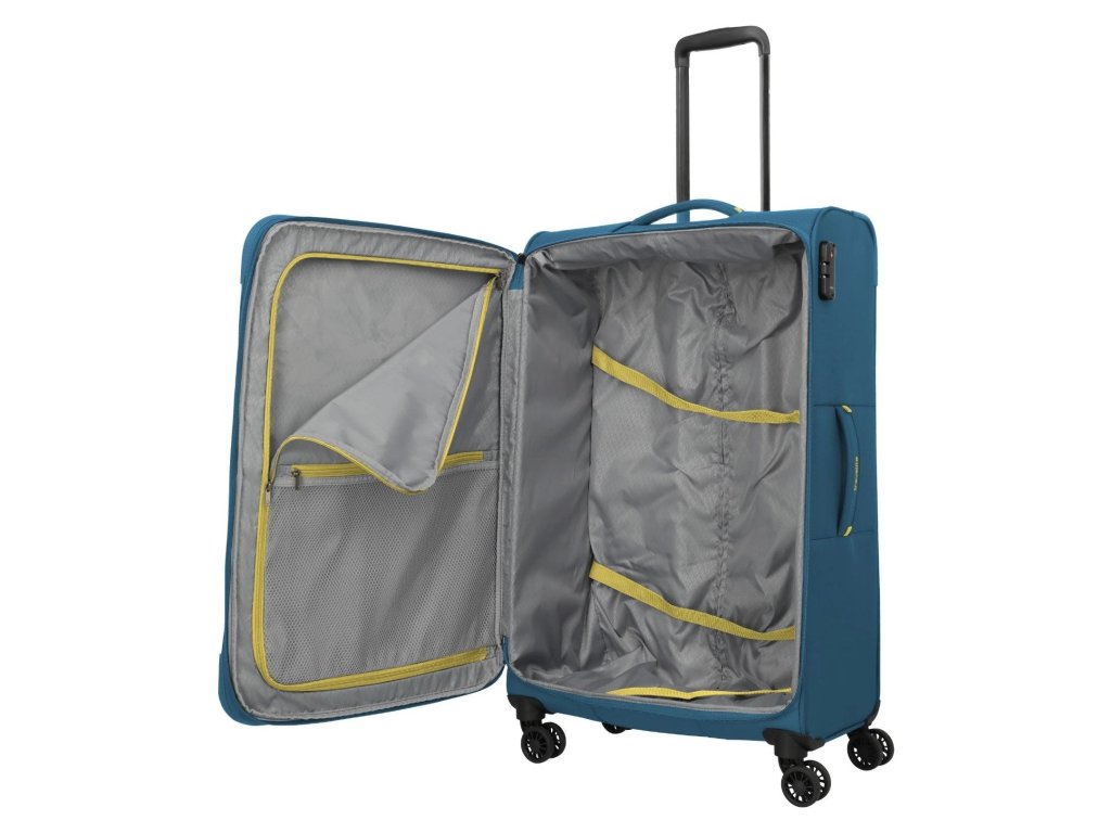 Lehký a přesto prostorný textilní kufr s expandérem na čtyřech dvoukolečkách pro stabilní jízdu a s TSA zámkem. Skvělá volba i třeba na cestu kolem světa.
