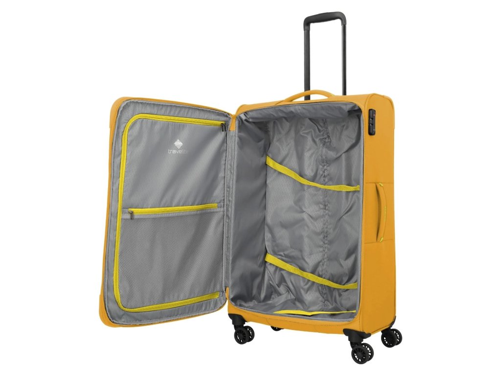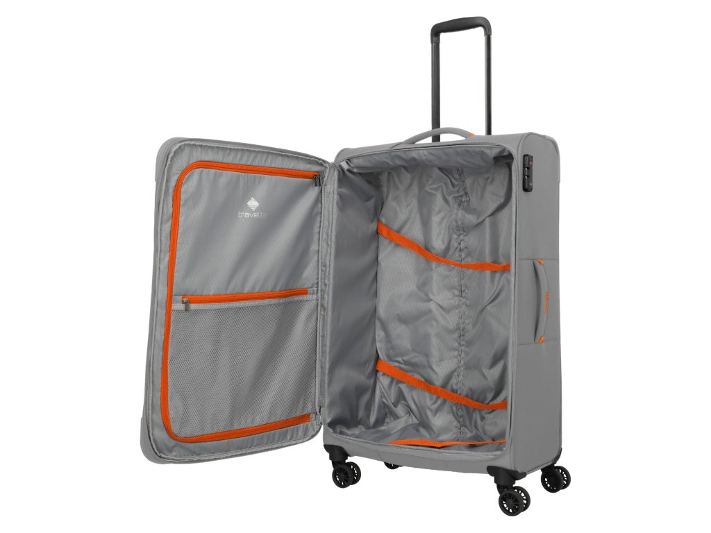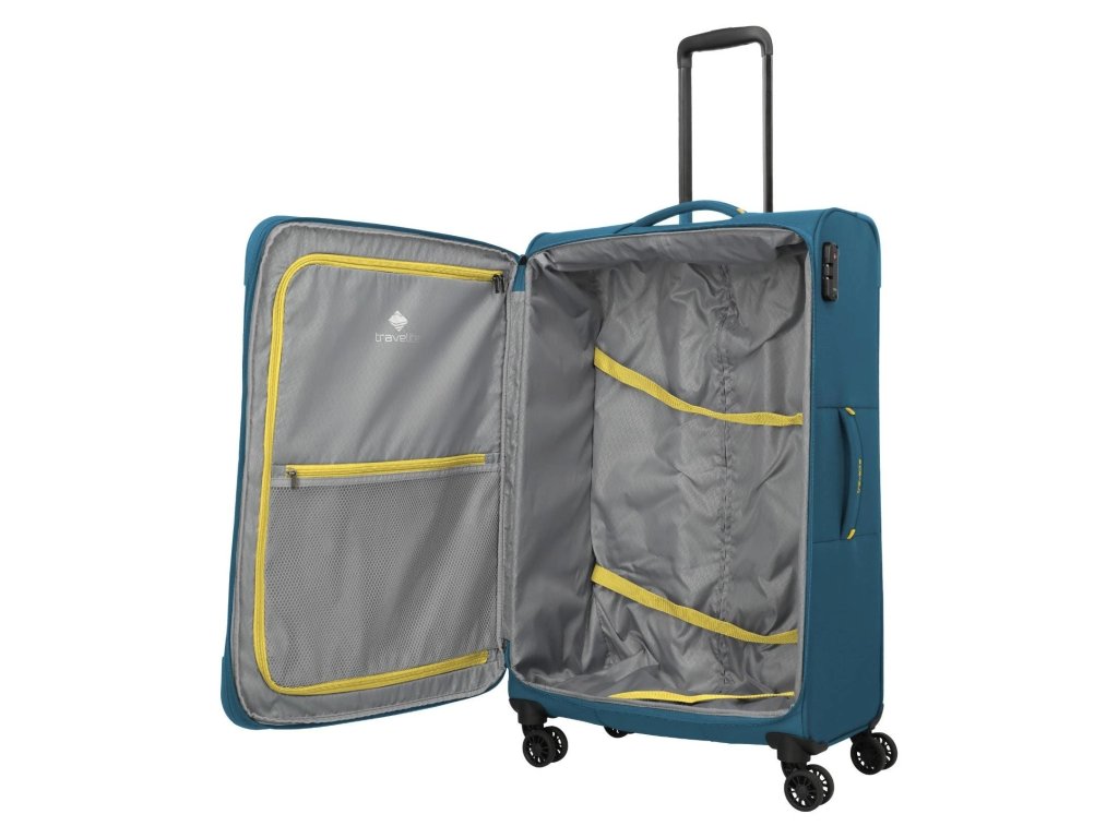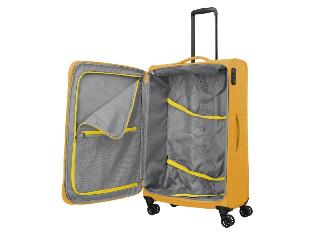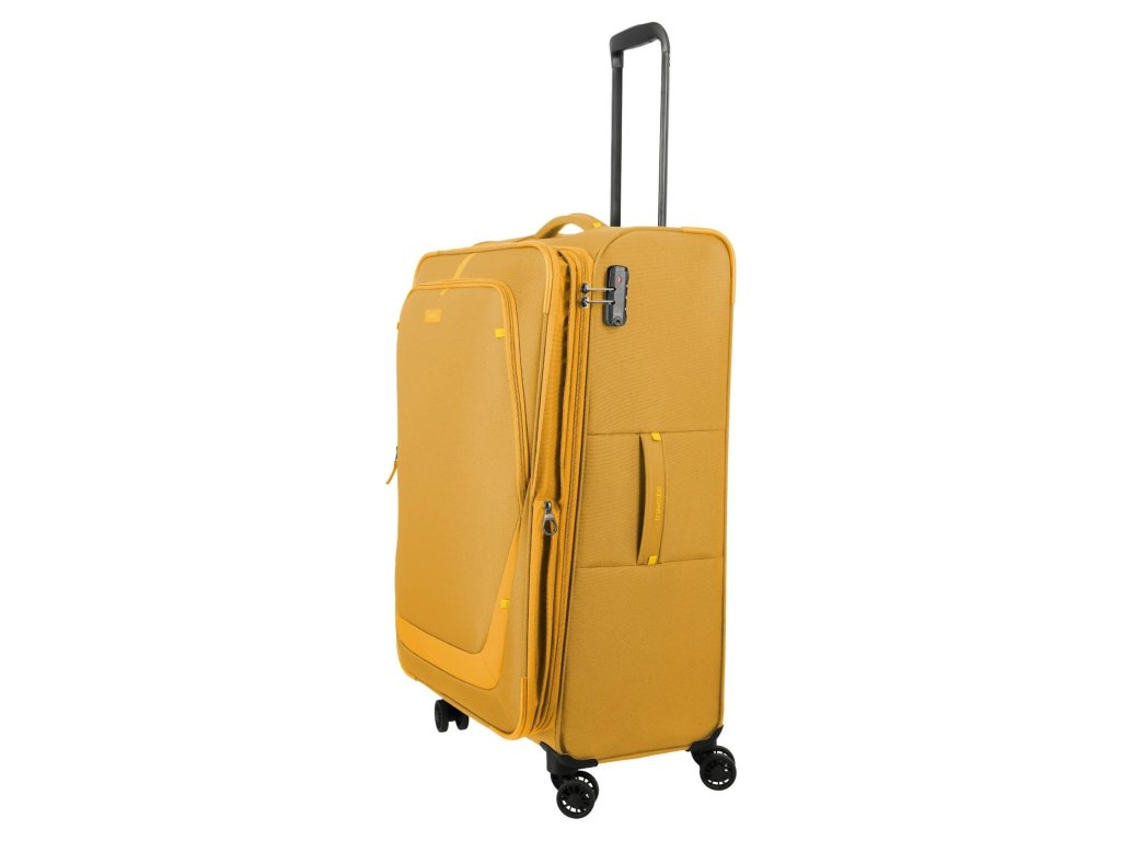 Lehký a přesto prostorný textilní kufr s expandérem na čtyřech dvoukolečkách pro stabilní jízdu a s TSA zámkem. Skvělá volba i třeba na cestu kolem světa.