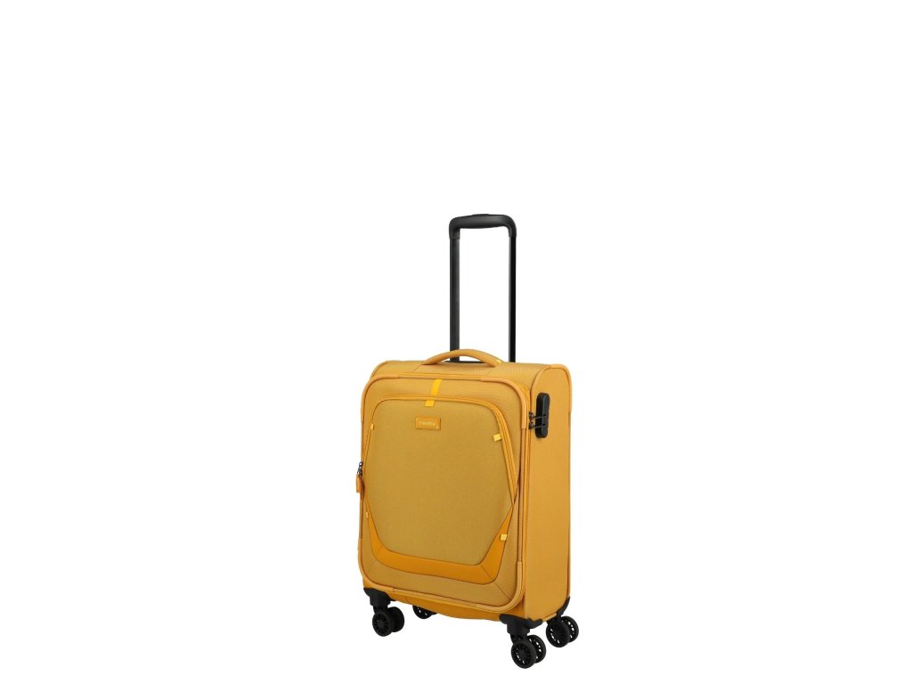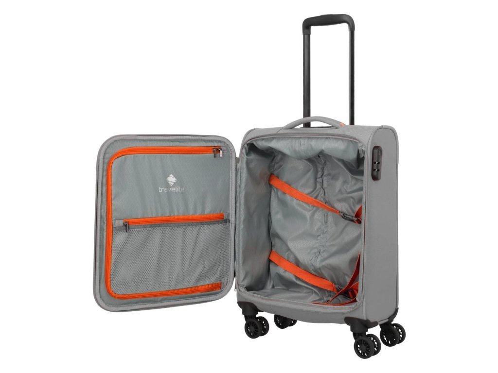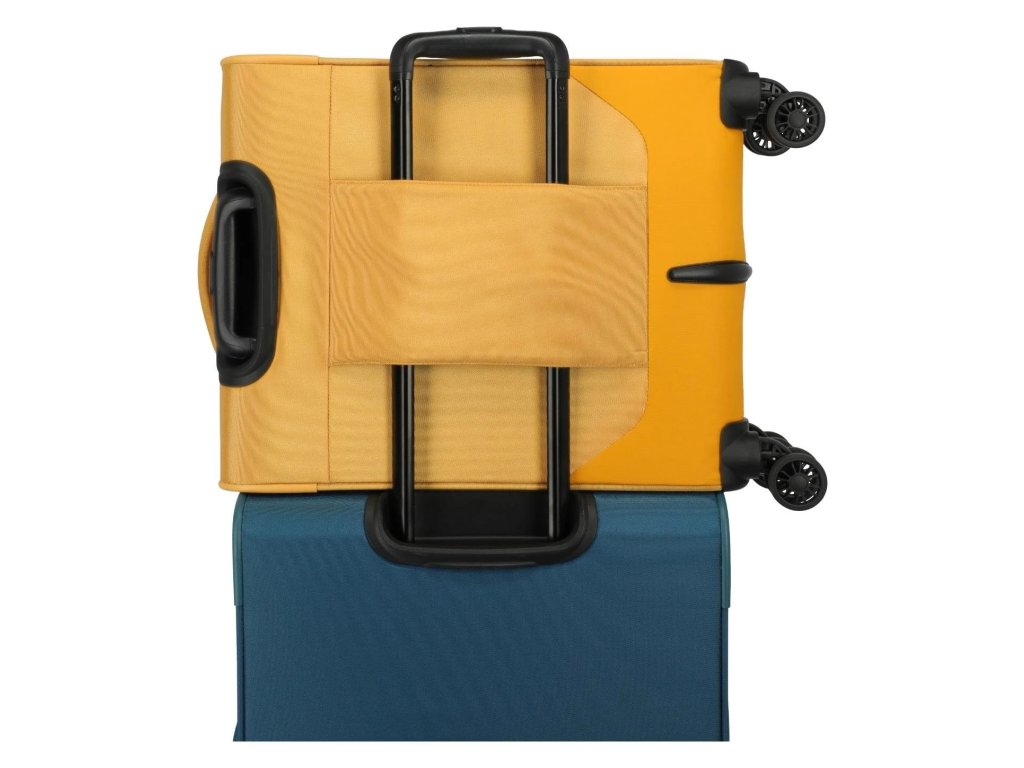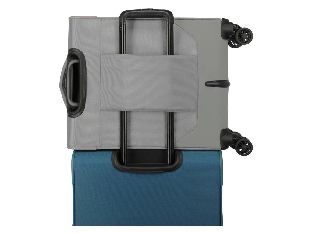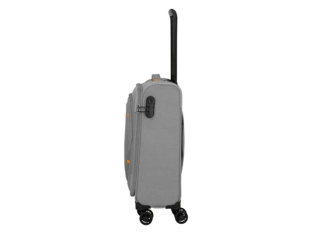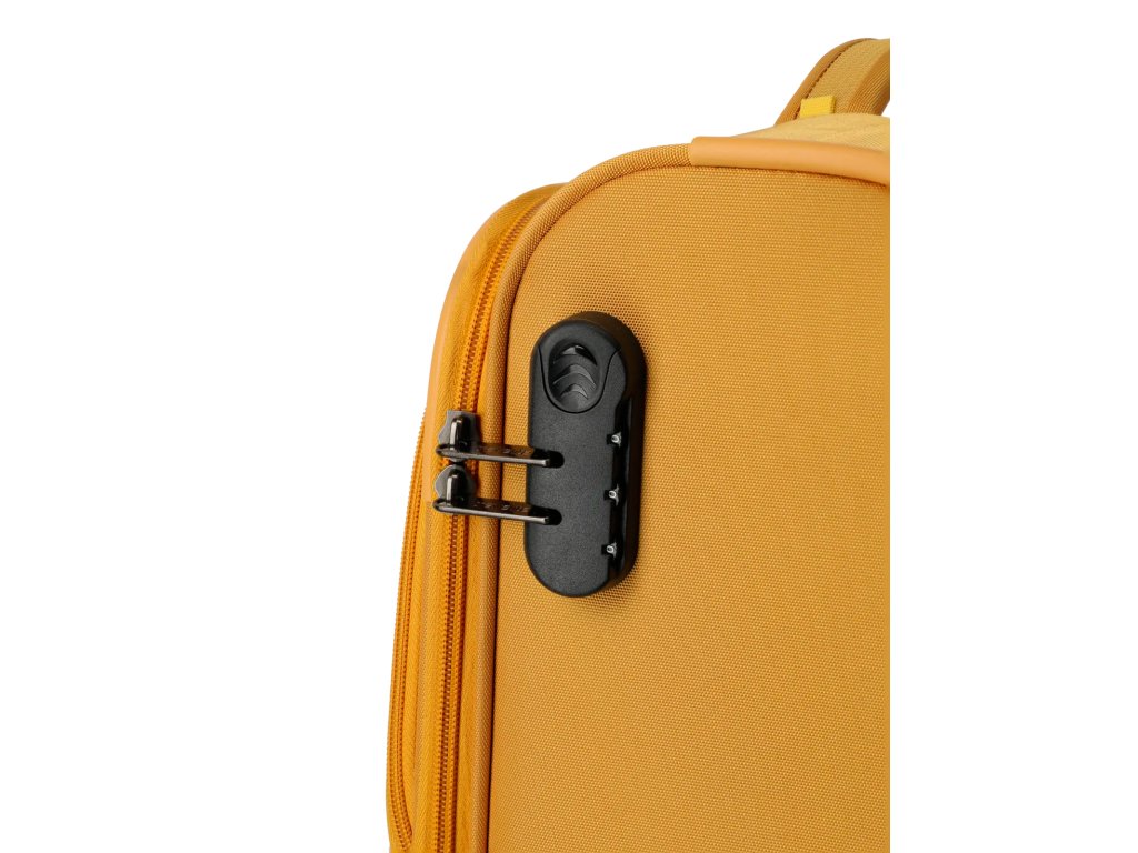 Lehký a přesto prostorný textilní kufr na čtyřech dvoukolečkách pro stabilní jízdu a zámkem.